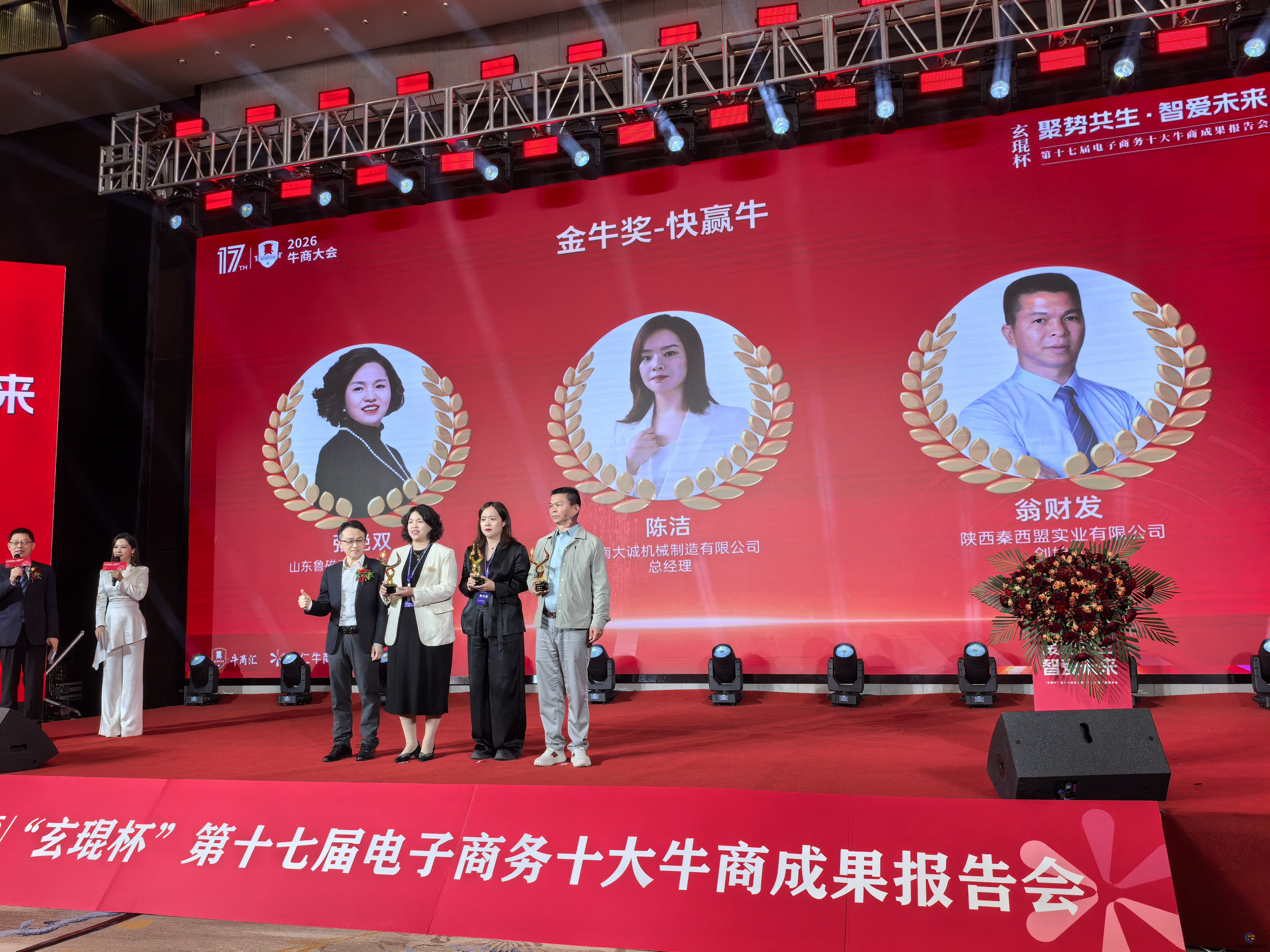 此次荣获“金牛奖 - 快赢牛”,是对秦西盟在电商领域创新实践和卓越成效的高度肯定。这一荣誉不仅提升了公司的品牌知名度和美誉度,也为公司未来的电商发展注入了强大的动力。董事长发财哥表示,将以此次获奖为契机,继续加大在电商领域的投入,不断提升电商运营能力,为客户提供更加便捷、高效的购物体验。